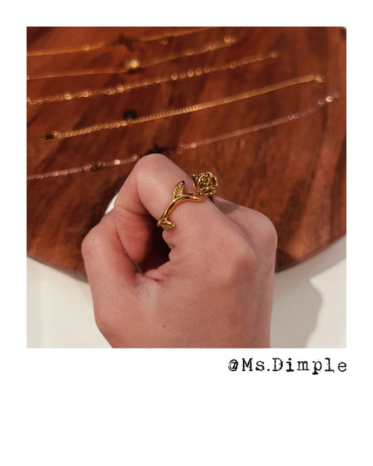 18K Gold Plated Stainless Steel Adjustable Romanic Rose Ring One Size Fits All